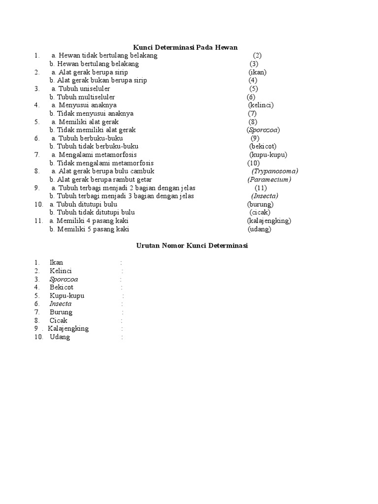 Sekali lagi jangan dari depan angka 1a/1b. Sep 29, 2020 · contoh soal kunci determinasi hewan dan jawabannya kunci ujian kunci dikotom berisi deskripsi atau ciri ciri makhluk hidup yang terdiri dari dua baris dengan ciri yang kontradiktif atau berlawanan. Identifikasi mencakup dua kegiatan yaitu klasifikasi dan tata nama. 03 mar, 2021 posting komentar. Jan 31, 2021 · contoh soal kunci determinasi tumbuhan dan jawabannya.